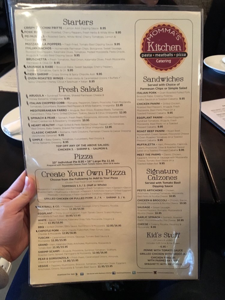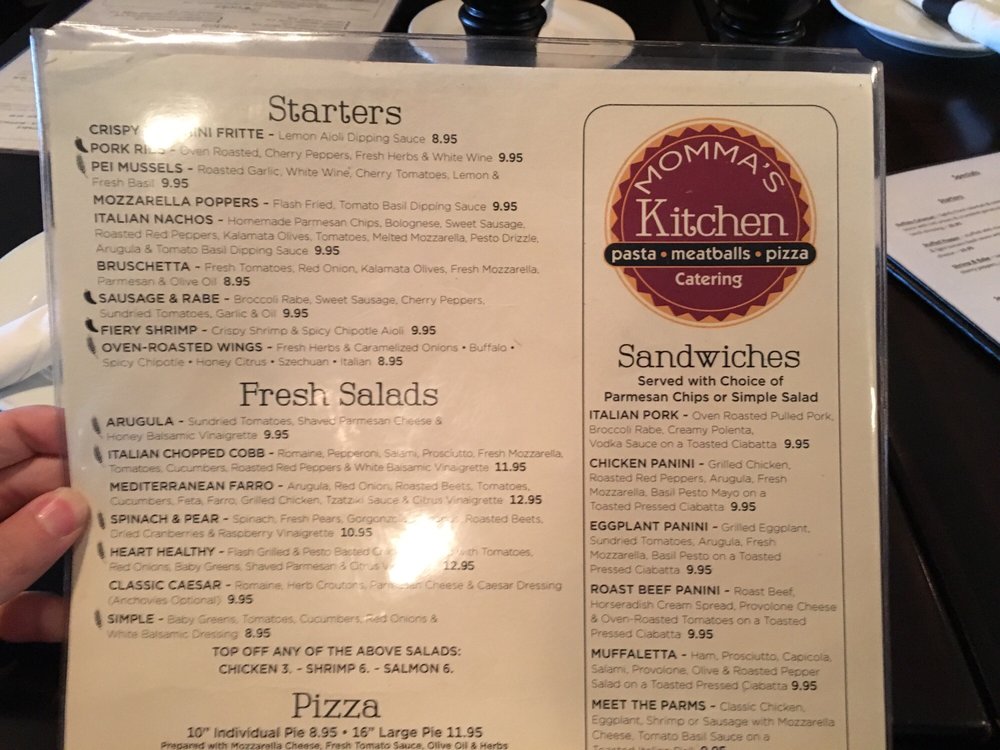 Momma's Kitchen offers a variety of dishes that cater to a range of preferences. From starters like crispy zucchini fritte and pork ribs to fresh salads like the Italian chopped cobb and Mediterranean farro salad, the menu is extensive and diverse. Customers have praised the family-friendly atmosphere and the attentive staff. The fried calamari, pizza, mixed seafood with pasta, and eggplant dish are highly recommended by patrons. The ambiance is modern and slightly dressy, making it suitable for various occasions. Prices are reasonable, making it a great spot for both business lunches and family meals. With plenty of seating and a relaxed feel, Momma's Kitchen provides a welcoming dining experience for all.